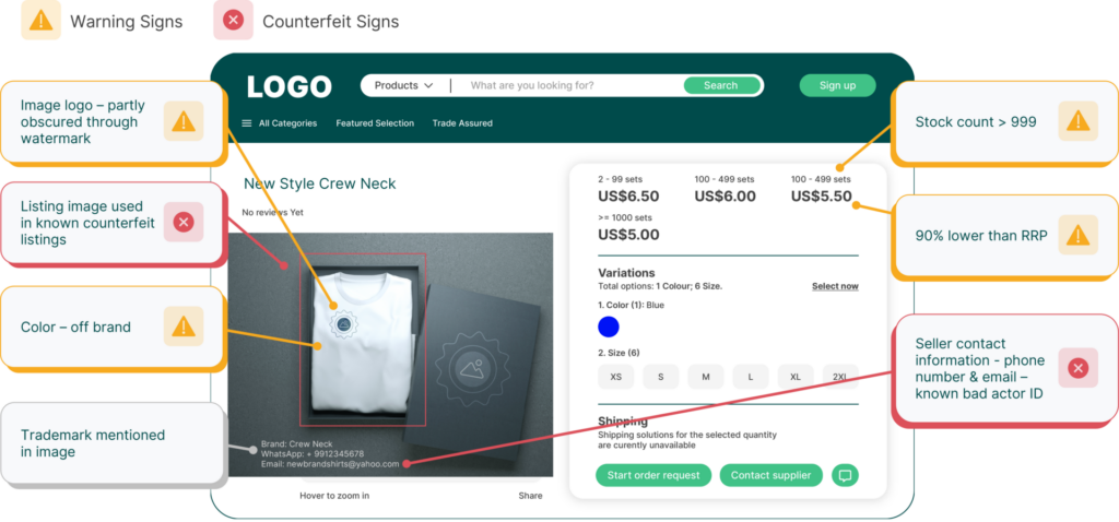 - Instant identification of counterfeit listings