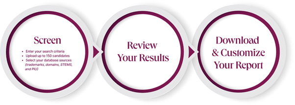 CORSEARCH Pharma-Check es fácil de usar. Para realizar su búsqueda preliminar de knockouts, siga un sencillo procedimiento de tres pasos.