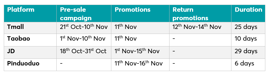 Singles’ Day 2019 pre-sale campaigns and promotions by marketplace (Corsearch, 2019)