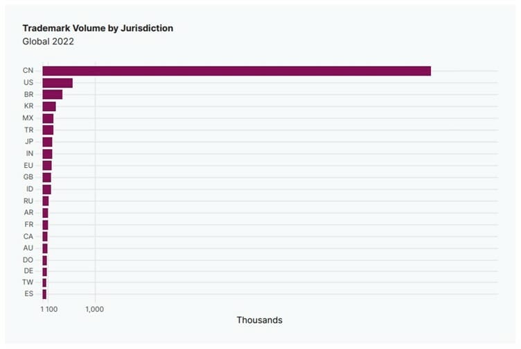 In addition, the highest number of trademark applications in 2022 were filed in China, with the U.S. ranking second in terms of activity, followed by Brazil, South Korea and Mexico. The EU (European Union) and Great Britain in 9th and 10th place, respectively.